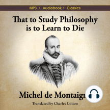 CHAPTER XIX——THAT TO STUDY PHILOSOPY IS TO LEARN TO DIE Cicero says—[Tusc., i. 31.]—“that to study philosophy is nothing but to prepare one’s self to die.” The reason of which is, because study and contemplation do in some sort withdraw from us our soul, and employ it separately from the body, which is a kind of apprenticeship and a resemblance of death; or, else, because all the wisdom and reasoning in the world do in the end conclude in this point, to teach us not to fear to die. And to say the truth, either our reason mocks us, or it ought to have no other aim but our contentment only, nor to endeavour anything but, in sum, to make us live well, and, as the Holy Scripture says, at our ease. All the opinions of the world agree in this, that pleasure is our end, though we make use of divers means to attain it: they would, other- wise, be rejected at the first motion; for who would give ear to him that should propose affliction and misery for his end? The controversies and disputes of the philosophical sects upon this point are merely verbal: “Transcurramus solertissimas nugas” [“Let us skip over those subtle trifles.”—Seneca, Ep., 117.]
