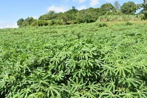 Manioc crops (foreground) and fruit trees (rear) thrive at an organic farm in Pinar del Ro province, western Cuba. Photograph: Roger Atwood