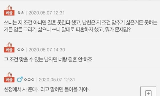 참고 : 남친이 제 신혼집 조건 듣더니 파혼하재요, 네이트판